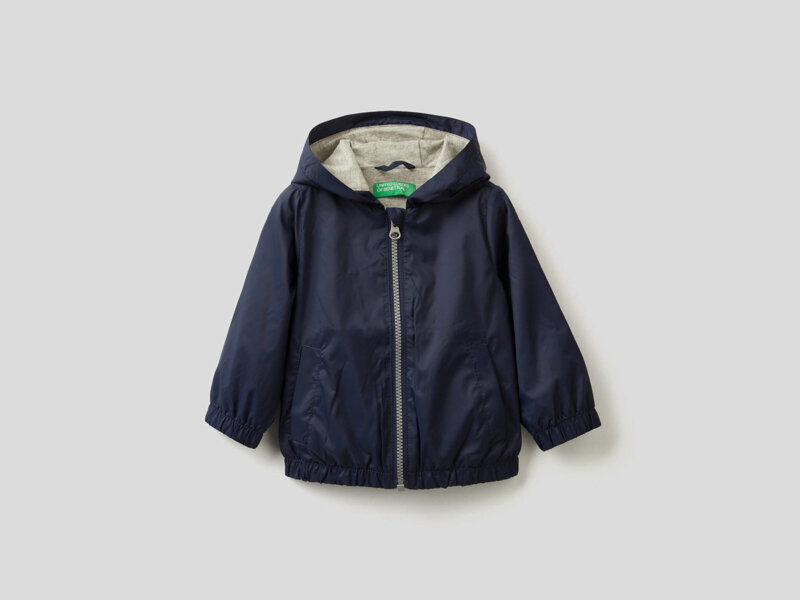 Giubbino leggero a manica lunga in tessuto tecnico "Rain Defender". Un capo tinta unita dotato di cappuccio stampato con logo a contrasto. Massima praticità: apertura con zip, elastico su polsi e fondo, comode tasche sul davanti. Solo in blu.