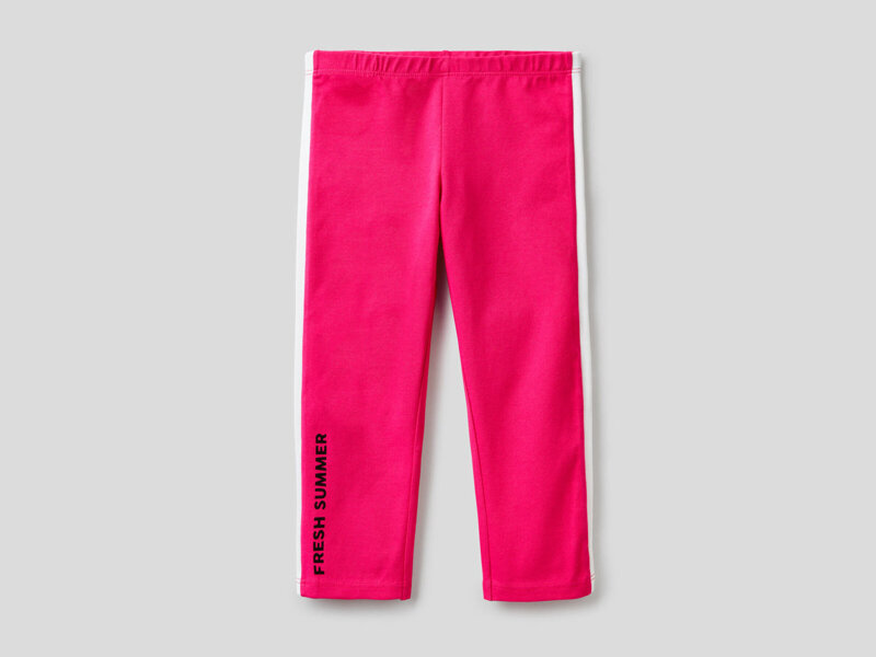 Leggings lunghi in cotone elasticizzato. Inserto a contrasto lungo la gamba e stampa slogan sul davanti. Facili da indossare grazie all'elastico interno in vita. Must have del guardaroba sportivo. Disponibile in 2 colori.